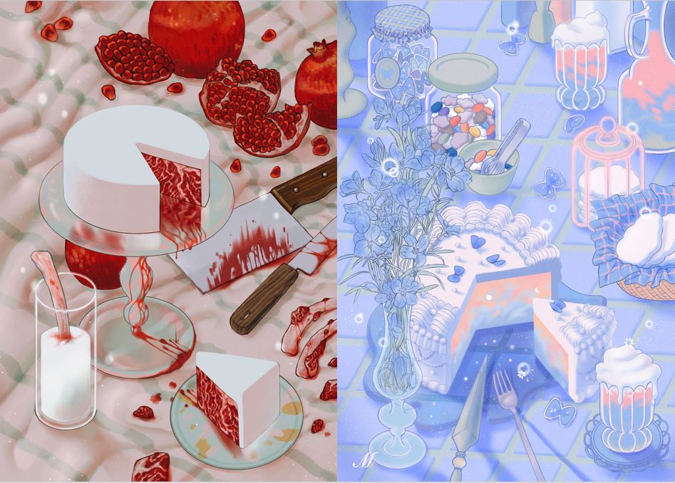 (주의⚠) 기묘한 레시피가 담겨 있습니다 벌써 추석 연휴가 끝났다는 것이 믿기지 않아요! 시간이 너무 빨리 지나가네요... 저만 그런가요...? 😂 열심히 쉰 만큼 이번 얼리레터는 보다 빵빵한 분량으로 구독자님을 뵙게 되었어요. 또, 얼리레터라는 이름에 걸맞게 아침 일찍 찾아와 봤고요. 기대되시죠? 문득 구독자님께서는 어떤 시간대에 레터를 받는 것을 가장 선호하시는지 궁금해지네요. 구독자님은 평소에 어떤 디저트를 좋아하시나요? 갑자기 왜 디저트냐면요, 오늘 레터에서는 현실에는 존재하지 않는 방법으로 기묘한 디저트를 그리는 작가님을 소개해 드리려고 하거든요! 🍰 작가님을 소개해 드린 다음에는, 일상에서 잘 모르고 있다간 언젠가 매콤하게 당할 수 있는😋 저작권 이야기도 함께 해 보려고 해요. 그럼 같이 가 보실까요? 오늘 담은 이야기는요, 01 / INTERVIEW 기묘한 레시피를 담는 일러스트레이터, '몽' 02 / NEWS 모르고 있다간 매콤하게 당할 수 있는 저작권 이야기 인터넷 밈, 마음대로 써도 될까? 03 / 놓치면 아쉬운+a '저작권 잘알' 되는 방법 그럼, 몽 작가님의 이야기부터 만나러 가볼까요? * 스팸메일에 등록되지 않도록 주소록에 early 메일을 꼭 추가해 주세요! 01 / INTERVIEW 신전나비 케이크 ©몽 오늘의 작가 :: 몽 몽 작가가 그리는 기묘한 세계 속에는 우리가 아는 빨간 사과와는 거리가 먼 '검은과'부터, 먹으면 좋은 꿈을 꾼다는 '잘 자요 케이크', 회전목마가 담긴 케이크까지... 한 번도 상상해 보지 못한 디저트들이 가득해요. 여러분은 이 중 어떤 케이크를 가장 맛보고 싶나요? 하나씩 살펴본 후 오늘의 인터뷰를 감상해 보세요🍰 바다 케이크 / 놀이공원 케이크 ©몽 고기 케이크 / 낮하늘 케이크 ©몽 장미 케이크 / 신당 케이크 ©몽 요즘 몽 작가님의 작업에서 눈길을 끄는 것은 단연 케이크🍰에요. 케이크 작업에 집중하게 되신 이유가 있나요? 저는 케이크를 좋아해요. 맛보는 것도 좋아하긴 하지만, 그것보다는 '케이크' 그 자체가 좋아요. 그래서 케이크가 전시된 사진을 보거나, 직접 베이킹을 통해 만드는 과정을 담은 영상도 자주 즐겨보고는 해요. 그리고 또 저는, 도형 중에서 '기둥'을 좋아하거든요. 그래서 원기둥, 사각기둥에 기반을 둔 오브제를 많이 그리는데요, 케이크는 주로 원기둥의 모양인데다가 납작하다는 점 때문에 특히 제 눈에 더 들어왔어요. 한마디로 요즘 완전 꽂혔다고 해야 할까요, 하하. 그래서인지 바다 케이크나 놀이동산 케이크처럼 새로운 케이크에 대한 새로운 영감도 더 빨리, 더 많이 떠오르는 것 같아요. 이런 케이크에 대한 그림을 모아, 지금은 <케이크 북>을 준비하고 있어요! 와! 준비 중인 <케이크 북>은 어떤 내용인지 맛보기로 살짝 소개해 주실 수 있나요? 제 첫 독립 서적이었던 <레테의 요리책>과 같은 레시피북 형태로 구성하고 있어요. 하지만 <레테의 요리책 2>는 아니랍니다. 주로 요즘 제가 그리고 있는 '케이크가 있는 식탁 일러스트'와 함께 새로운 세계관을 소개할 예정이에요. <레테의 요리책>에서는 레테가 레시피를 소개해 주었지만, 이번에 케이크를 만드는 건 레테가 아닌 다른 이입니다. 스산한 숲속의 병원 안에서 케이크 가게를 운영하고 있죠. 제 첫 책보다 미스터리한 분위기가 더해질 것 같아요. <레테의 요리책>의 '레테' ©몽 평소 위에서 내려다 본 구도로 찍힌 식탁 사진을 모으는 걸 좋아하는데, 막상 한 번도 그림으로 그려본 적은 없었거든요. 그래서 기획하게 되었답니다. 레시피 제공자 ‘레테’라는 존재가 특히 흥미롭던데요. 머리가 두 개인 염소 캐릭터이죠. 식탁 일러스트를 책으로 엮으며, 이 이야기의 전달자가 필요하다는 생각이 들어 '레테'라는 캐릭터를 만들게 되었어요. 처음부터 머리가 두 개이며, 키가 크고 마른 이미지의 염소를 생각했고요. 이야기를 풀어 나갈 캐릭터를 '염소'로 설정한 이유는, 염소가 악마와 연관 지어지기 때문이었어요. 저는 길하다고 여겨지지 않는 존재를 제 마음대로 그리는 게 좋아요. 레테에 관해서는 나름 몇 가지 설정이 있는데요, 말로 설명하기보단 언젠가 그림으로 보여드리고 싶네요. 레테 얘기를 해주셔서 기뻐요! 낯선 디저트들을 구상하게 되신 계기가 궁금해요. 맨 처음 그린 디저트는 어떤 것이었을지도요. <레테의 요리책>에 실린 그림들 중 제일 처음 그려진 그림은 검은 사과가 있는 식탁이었어요. 작년 초, 인물을 그리고 싶은데 도무지 마음에 드는 러프 스케치가 나오지 않아서 고민이 많았을 때 문득 예전부터 상상만 했던 '검은색 사과'가 다시 떠올라서 그리게 되었죠. 그렇게 '검은과'를 그리고 나니, 나의 판타지를 어떻게 그림에서 실현할 수 있는지부터 내가 가진 기술과 감을 어떻게 활용할 수 있는지 깨닫게 된 것 같아요. <레테의 요리책>의 '검은과' 이런 판타지 세계관 구축에 있어 가장 신경 쓰셨던 부분은 무엇인가요? '상상할 여지를 남겨두는 것'이에요. 창작 판타지 세계관으로 유명하고 인기도 많은 작가들의 작품을 살펴보면, 한치의 빈틈도 없이 완벽한 세계는 없더라고요. 우리의 세계가 닫혀있지 않듯, 만들어진 세계도 그럴 필요가 없다는 생각을 했고, 많은 