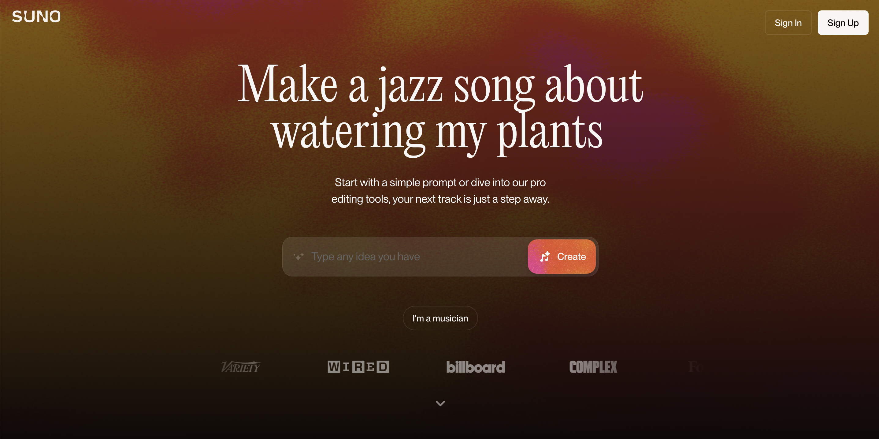 지금 흥얼거리는 이 멜로디로 내 노래 하나 뚝딱 만들어보고 싶다는 상상해 본 적 있지 않나요? 이제 상상만 했던 일을 단 몇 초 만에 실현할 수 있답니다! SUNO는 직접 입력한 몇 줄의 글이나 키워드만으로 노래를 만들어주는 인공지능 기반의 음악 생성 서비스인데요. 멜로디 작곡, 보컬 생성, 편곡까지도 모두 자동으로 이루어지니 음악에 대한 전문 지식이나 작곡 경험이 없어도 전혀 문제 될 게 없답니다!