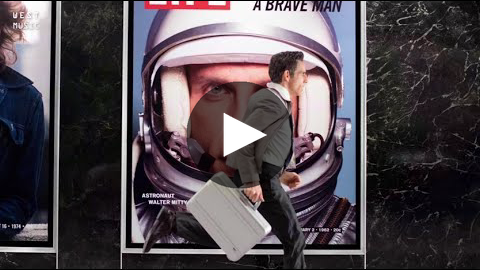 영화 속에는 결정적인 두 번의 달리기가 나오는데요. 첫 번째는 월터가 사라진 25번 필름을 찾기 위해 회사 밖으로 뛰쳐나가는 장면이에요. 일자리를 잃을지도 모른다는 두려움도 있었겠지만, 제 눈에는 정면승부를 위해 자신의 삶 속으로 뛰어드는 것처럼 보였어요. 뛰쳐나가는 월터의 뒤로 LIFE 지의 표지들이 지나가는데 마지막에 우주비행사 월터 미티의 사진이 걸려있어요. <Space Oddity>의 메이저 톰을 연상시켜서 무릎을 탁 치고 말았죠. |