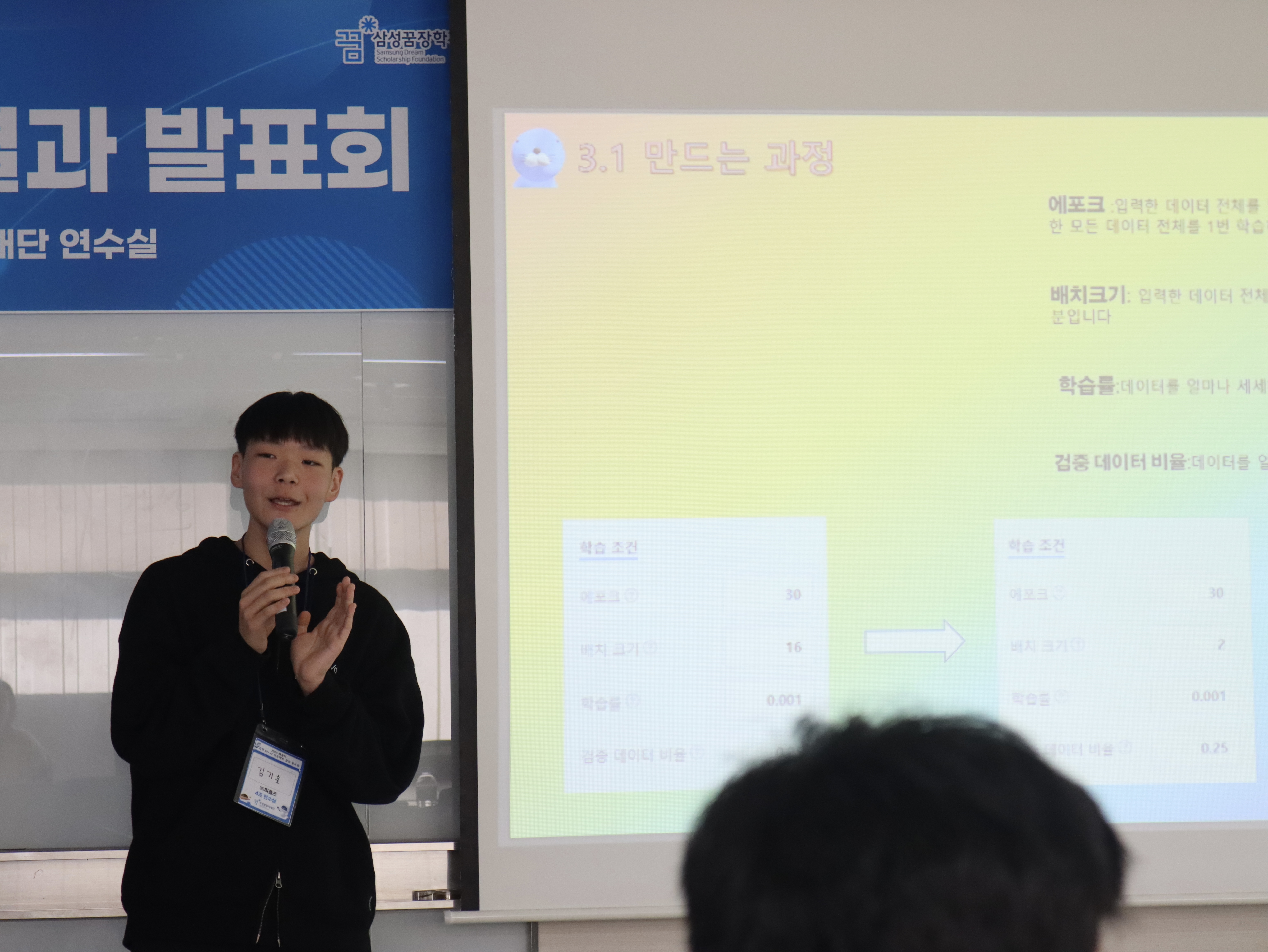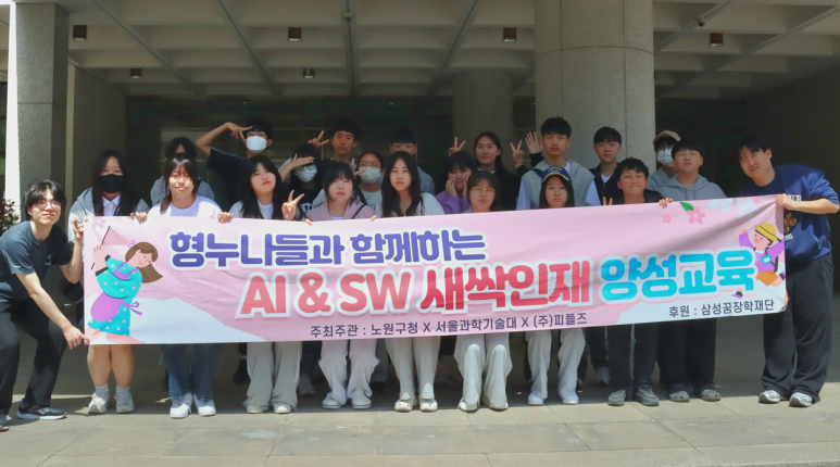 노원구내 중학생 19명을 대상으로 한 AISW 교육이었고, 1년동안 아이들의 AISW교육을 통해 변화를 만들어내는 교육 프로그램이었습니다. 1년동안 아이들과 함께 매주 토요일 아침부터 오후까지 코딩을 하고, AI교육을 진행하면서 아이들이 자신이 느끼는 사회문제를 직접 자신만의 서비스로 만들어 발표까지 하는 프로그램을 기획해 운영했습니다.