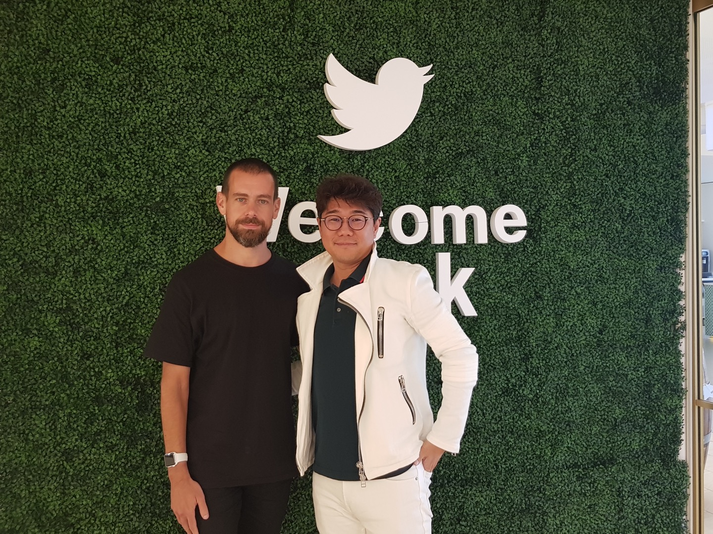 2018년 호주 시드니의 트위터 호주지사 사무실에서 잭 도시 창업자(왼쪽)과 쫌아는기자들 1호 성호철. /성호철 기자 |