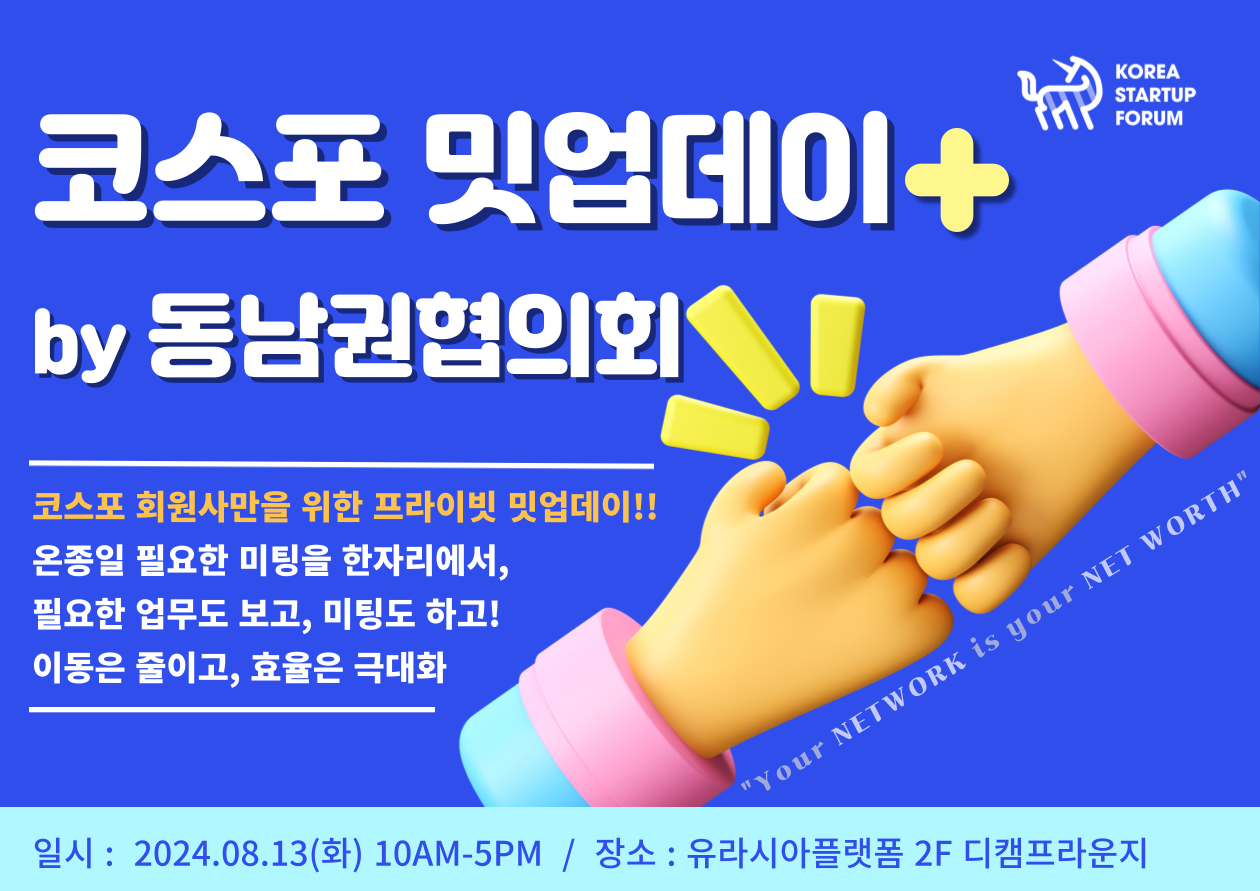 코스포 동남권협의회가 <코스포 밋업데이>를 개최합니다. 부산·울산·경남에 있는 회원사가 한 데 모여 각자 일하고, 또 같이 네트워킹 할 수 있는 자리를 마련했습니다.