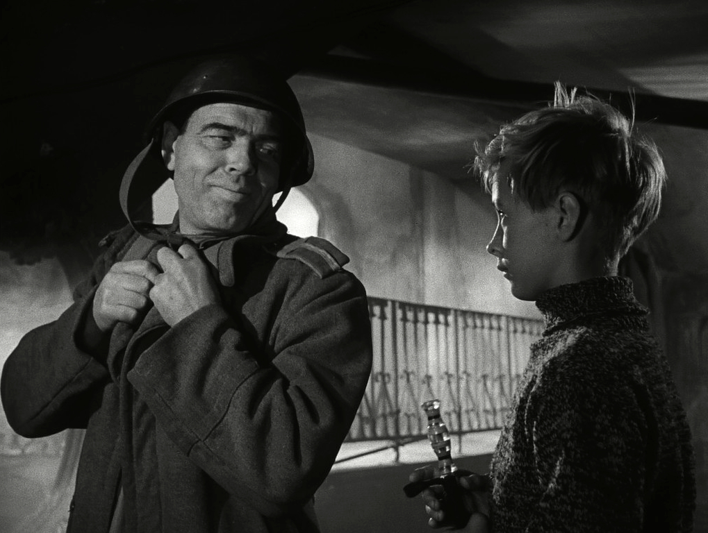 영화는 독일군의 침공으로 가족 모두를 잃고 고아가 된 소년 ‘이반’의 이야기를 다루고 있습니다. 군의 정찰병으로 발탁된 이반은 전방에 나가 독일군과 싸우고 싶어 해요. 가족을 죽인 원수지간이나 다름없으니까요. 같은 부대에 있던 콜린 대위는 10살 남짓한 이 어린 소년이 전장에 나가는 걸 막으려 그를 후방의 군사학교로 보내려 하고요. |