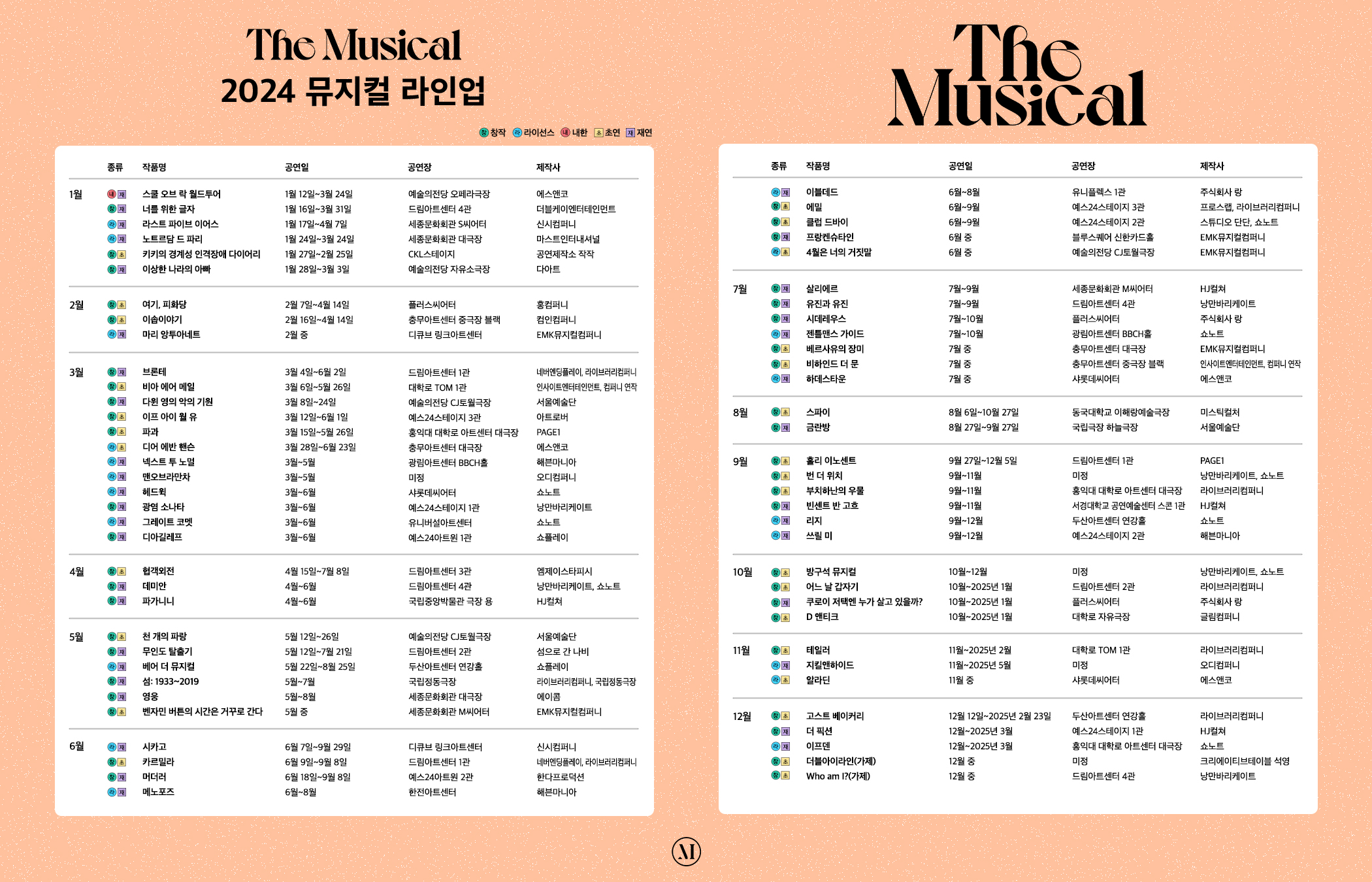 2024년 전반적인 라인업이 궁금하다면, 뮤지컬 전문지 '더뮤지컬'이 공개한 라인업 자료를 확인해 보세요! |