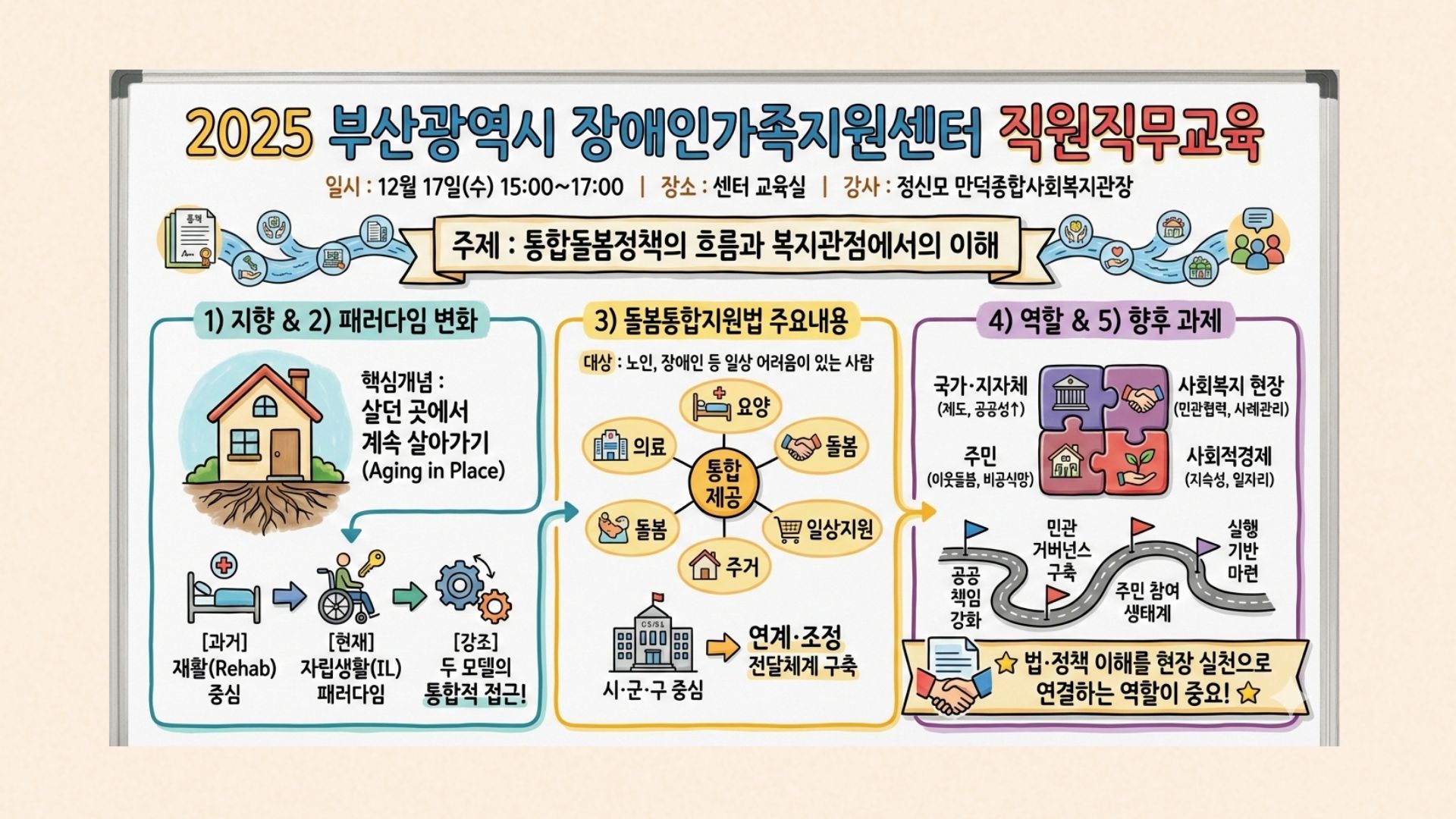 에 대해 만덕종합복지관 정신모 관장님을 모시고 직무교육을 진행하였습니다.