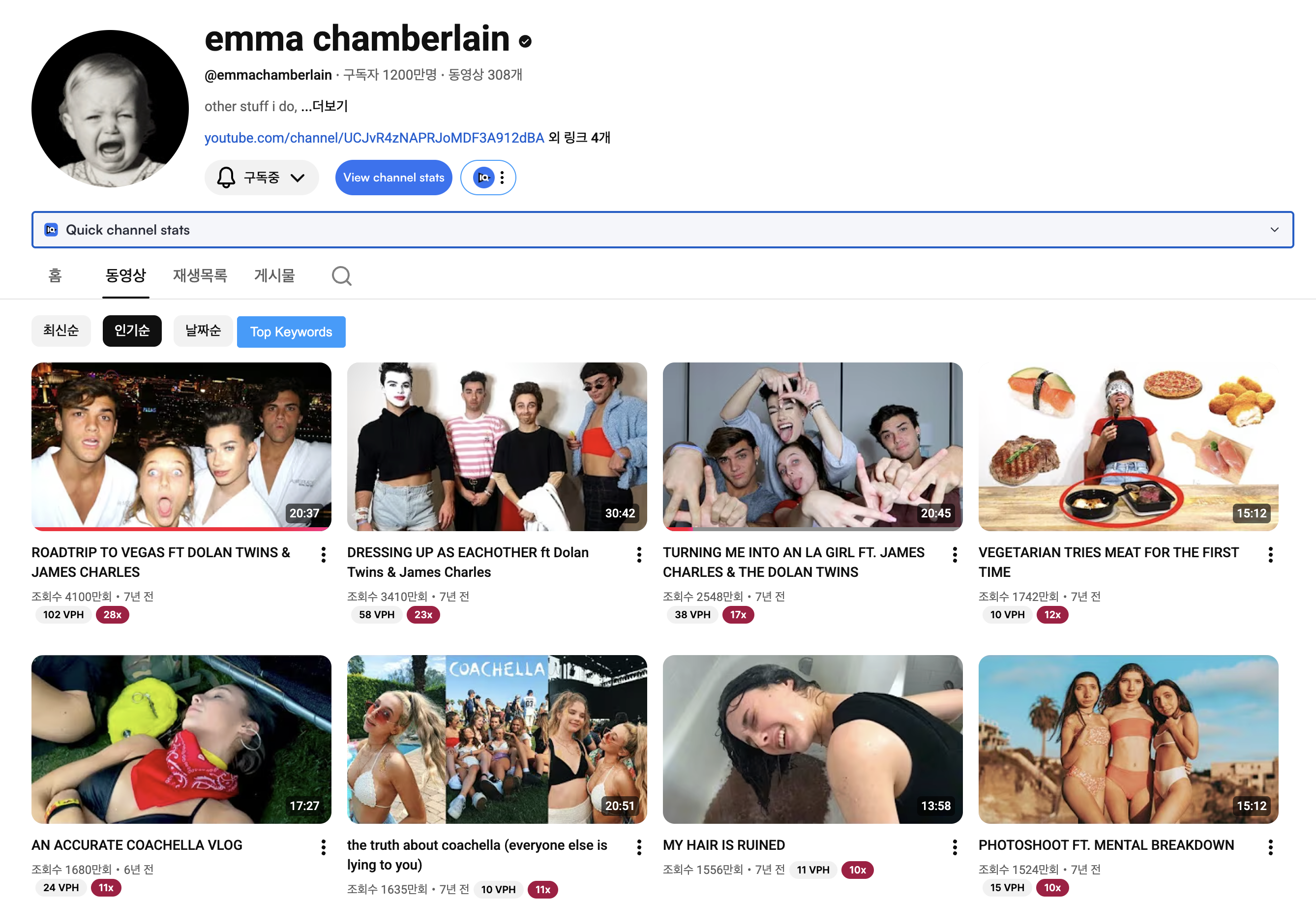 ์ ์๋ 100๋ง, 200๋ง์ด ๋์ง๋ง ์กฐํ์๊ฐ 1์ฒ ํ๋ฐ์ ๋์ค์ง ์๋ ๋ธ๋๋ ์ฑ๋์ด ํ๋คํ๋ค.