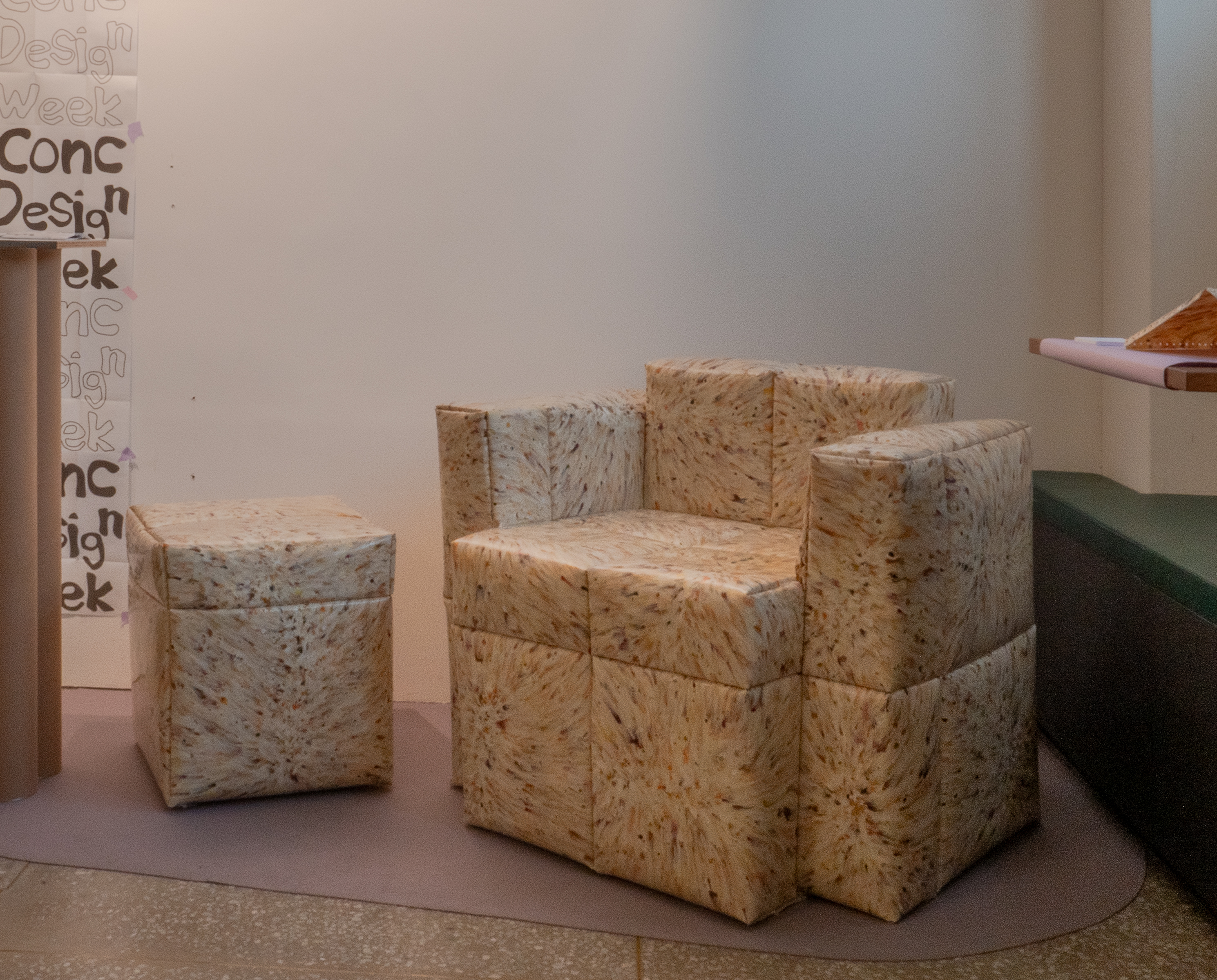 소재 회사뿐 아니라 작가도 비슷하다. 코로나 시대의 '폐마스크'라는 상징적인 소재로 씬에 데뷔한 김하늘 작가는 나이키, 이케아 등 대형 브랜드와 콜라보하고, 뉴욕 아트 페어에도 초청받아 전시하는 국제적인 작가가 되었다. 폐신문지로 벽돌을 만들어 시각적인 임팩트가 강력했던 이우재 작가는 오브제를 넘어 회화적인 작품까지 영역을 확장해 활동하고 있다. 그밖에 위빙 작업으로 식물의 싱그러움을 표현하는 밍예스 작가, 옻칠로 작가만의 텍스처를 만들어내는 편소정 작가, 한지로 작업하는 김현주 작가 등 작가 고유의 소재들이 있다.