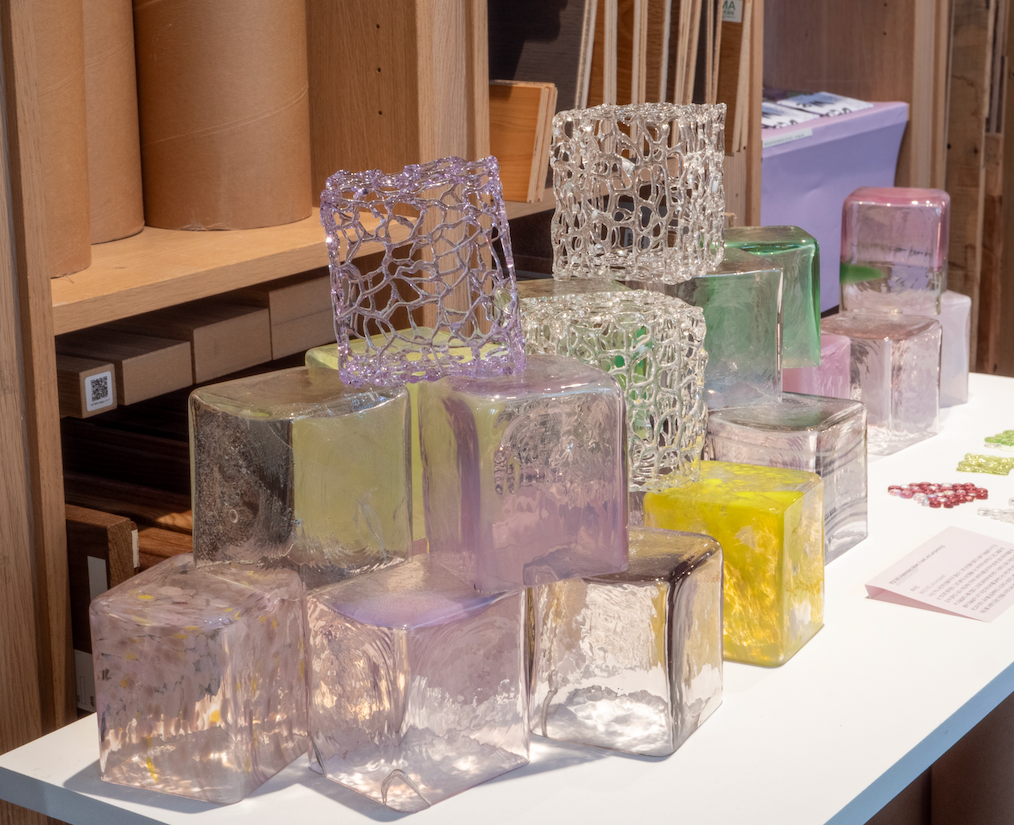 수진님은 보라와 연두색을 사랑해 작업에 적극적으로 사용한다. 수업을 들으며 익숙한 도자에서 유리로 재료를 바꿔 작업하기 시작했다. '쌓아진 태도'는 4cm 크기의 사각 큐브와 그 안의 유리 곰돌이 피규어를 보고 보존의 의미를 생각하며 나온 작품이다. 처음 유리를 궁금해하고 시도하던 모습이 사각의 유리블록에 각기 다른 기법과 재료로 표현되어 담겨있다. |