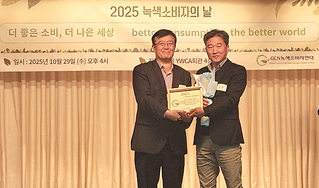 원진재단부설 노동환경건강연구소가 GCN녹색소비자연대로부터 2025년 10월 29일 감사패를 받았습니다. 녹색소비자연대와 노동환경건강연구소는 가습기 살균제 사고로 큰 아픔을 겪은 우리 사회가 “더 이상 같은 아픔을 겪지 않아야 한다”는 데 뜻을 같이하며 유사 사고의 재발을 방지하고 보다 안전한 생활화학제품 시장을 만들기 위해 함께 애써왔습니다. 노동환경건강연구소는 2021년부터 ‘화학물질저감 우수제품 심사제도(이하 화우품)’를 통해 효능과 안전성을 모두 보유한 제품을 선정해 소비자가 안전한 녹색소비를 할 수 있는 환경을 만드는 데 힘을 쓰고 있는데요. 화우품 제도를 만든 목적은 유해물질이 없는 제품, 화학물질 사용 저감을 위해 앞장선 제품들이 소비자의 선택을 더 많이 받을 수 있도록 하는 것입니다. 연구소는 화우품을 위한 기준을 제시하고 기업이 신청한 제품들이 그 기준에 합당한지를 심사하고 있습니다. 제품이 안전해지면, 유해화학물질 사용이 저감되고, 궁극적으로는 유해물질이 더 이상 사용되지 않는 보다 안전한 사회를 만들 수 있습니다.