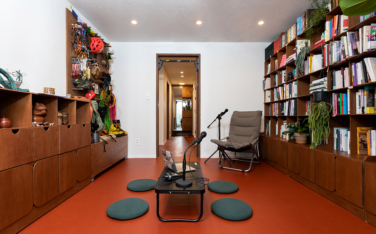 👩🏻 별칭은 ‘도시와 자연을 잇는, 일상의 모험가들을 위한 산장’이고요. 이 집의 콘셉트는 ‘집이자 레지던스’예요. 저의 주거 공간이면서 동시에 1인 여성을 위한 숙소, 팟캐스트를 녹음하는 스튜디오, 소규모 모임을 여는 살롱 등 여러 기능을 갖춘 복합 공간이길 바랐어요.