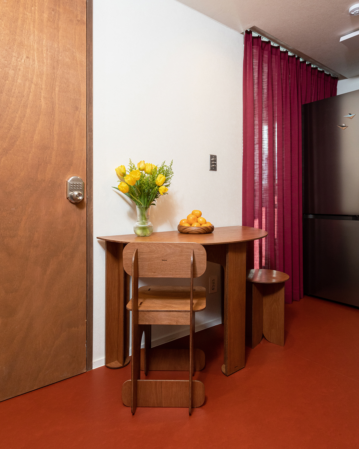 🖌️ 인테리어 콘셉트를 설명해 주세요.👩🏻 이 집의 메인 콘셉트는 집이면서 동시에 팟캐스트 스튜디오이자 레지던스로 활용되는 복합 공간이에요. 주거보다는 다양한 활동의 성격에 비중을 두고 인테리어를 고민했죠. 단순히 쉼을 위한 공간이었다면 카펫과 조명으로 분위기를 채우는 방식이었겠지만, 이번엔 반대로 최대한 비워두려고 노력했습니다. 대신 말린 장미색 바닥을 포함한 마감재와 필수 가구에는 집주인의 취향이 묻어나도록 임팩트 있게 디자인했어요. |