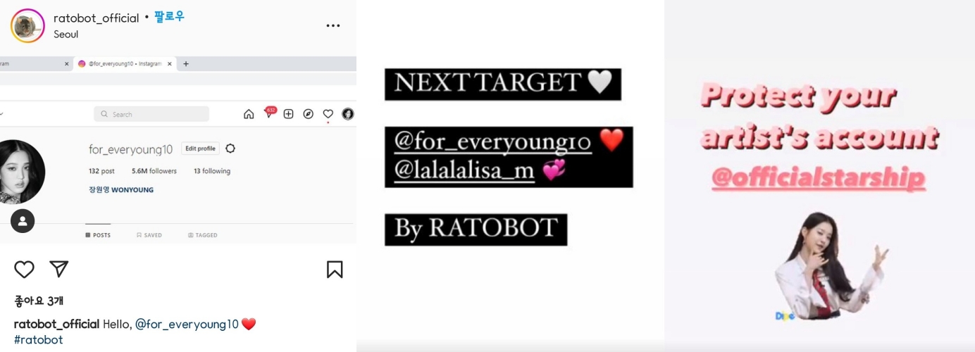 스타쉽 엔터테인먼트에 “계정을 지켜보라”고 글을 올렸고 장원영 다음 타깃으로 블랙핑크 리사를 지목했어.
