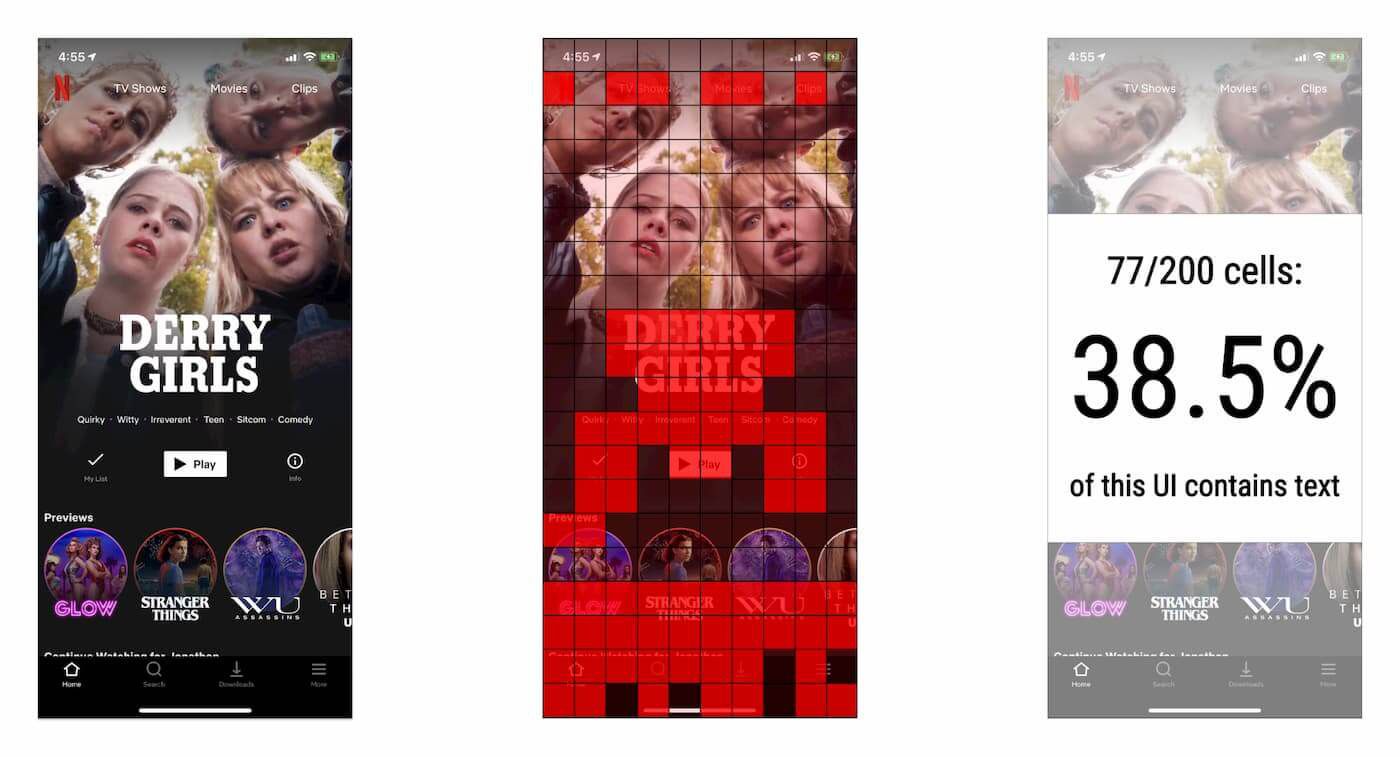 ์คํธ๊ฐ ํ๋ฉด์ 3.5%๋ง ์ฐจ์งํ๊ณ Snapchat๊ณผ ๋น๊ตํ๋ฉด Netflix์์๋ ์ฌ์ฉ์๊ฐ ์ด ๊ฑฐ๋ํ ํฌ๊ธฐ์ ํ