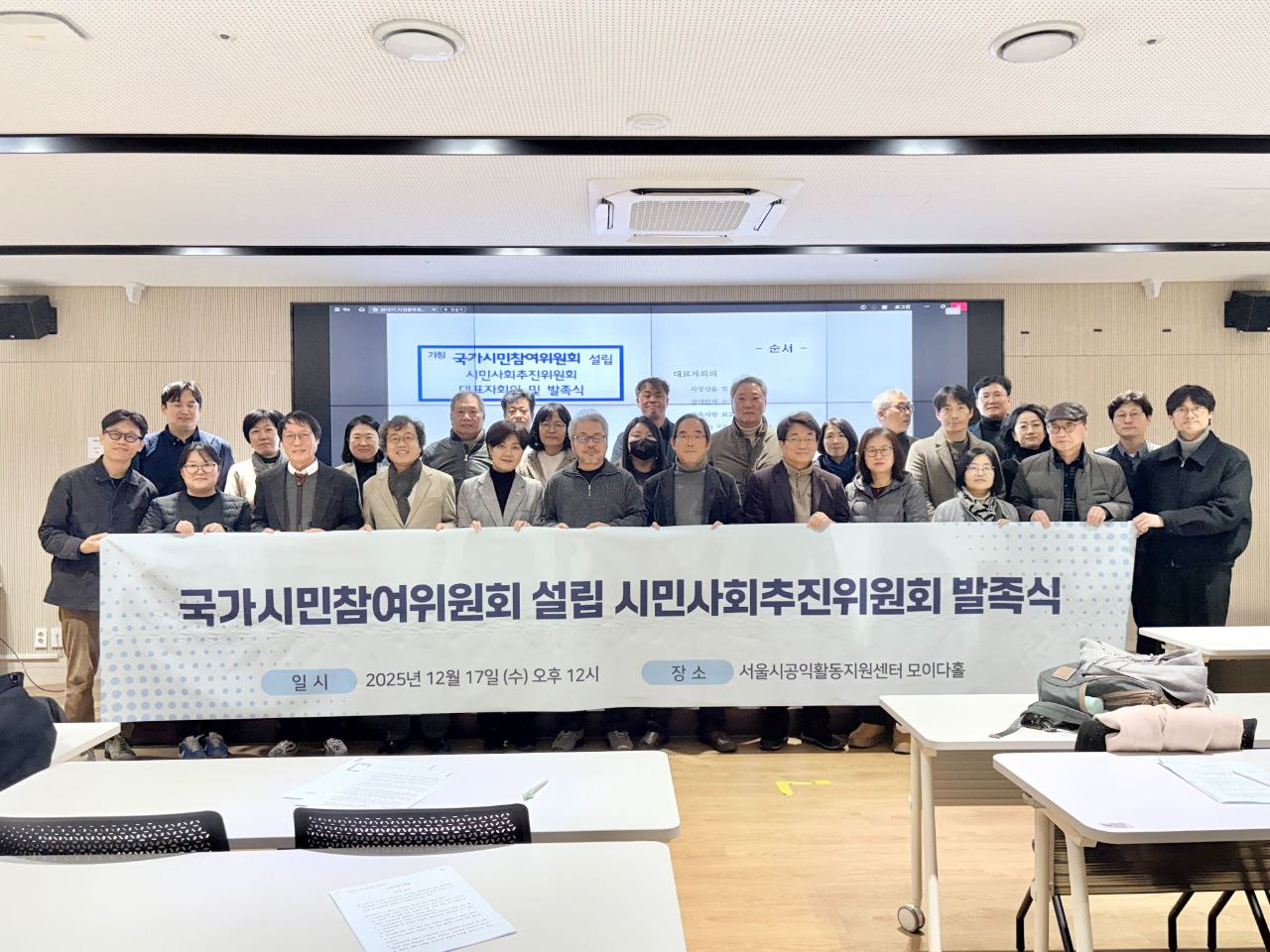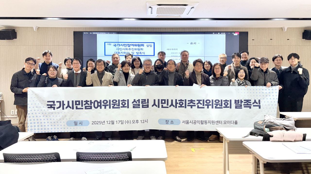 '국가시민참여위원회 설립 시민사회추진위원회(이하 추진위)'는 12월 17일(수) 낮 12시, 서울시공익활동지원센터 모이다홀에서 '전체 대표자회의 및 발족식'을 개최하고 공식 출범을 알렸다.
