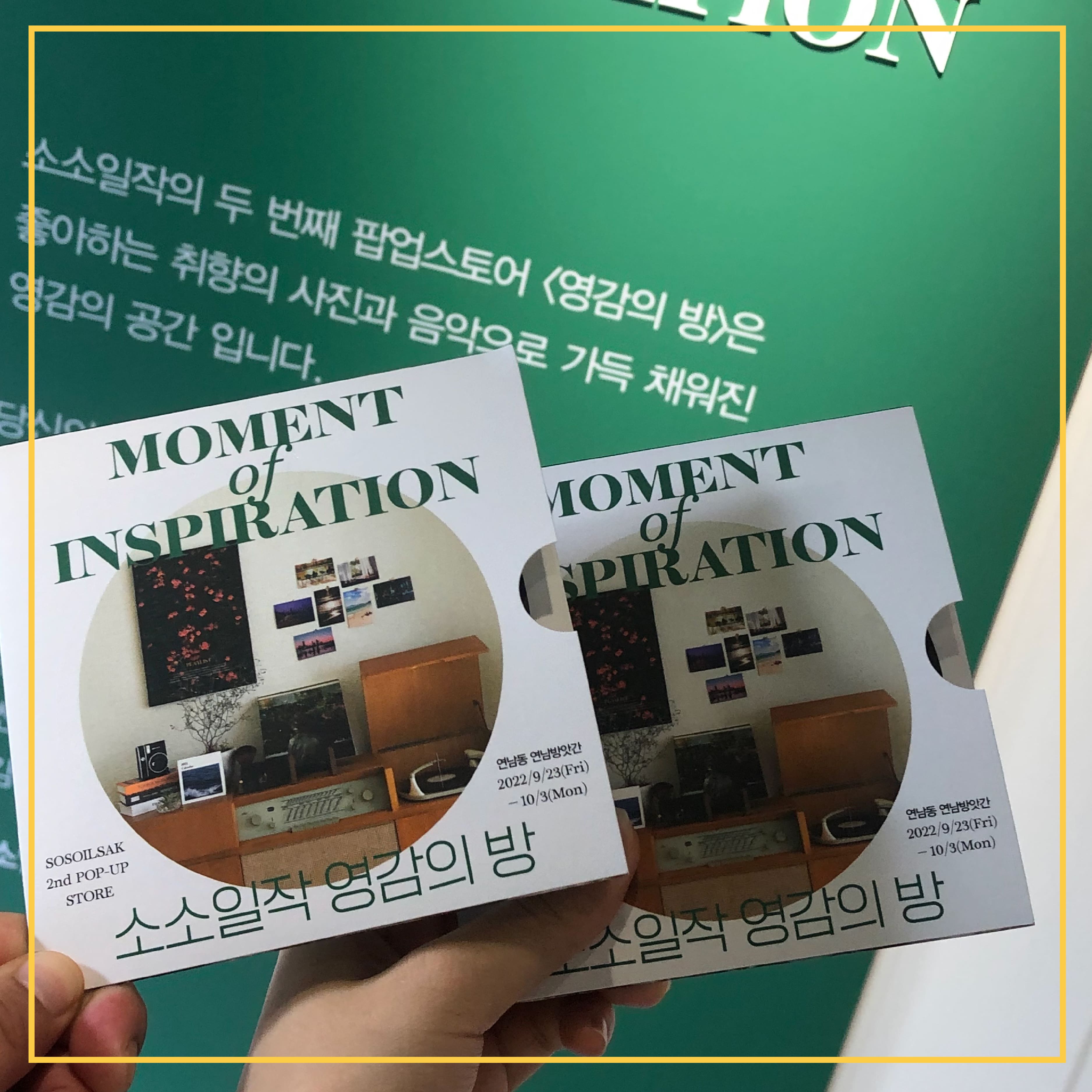 새침이들이 영감의 방을 방문했을 때는 카페 운영 대신 한국후지필름의 사진 문화 캠페인 소소일작의 팝업스토어 "영감의 방"이 진행 중이었습니다.