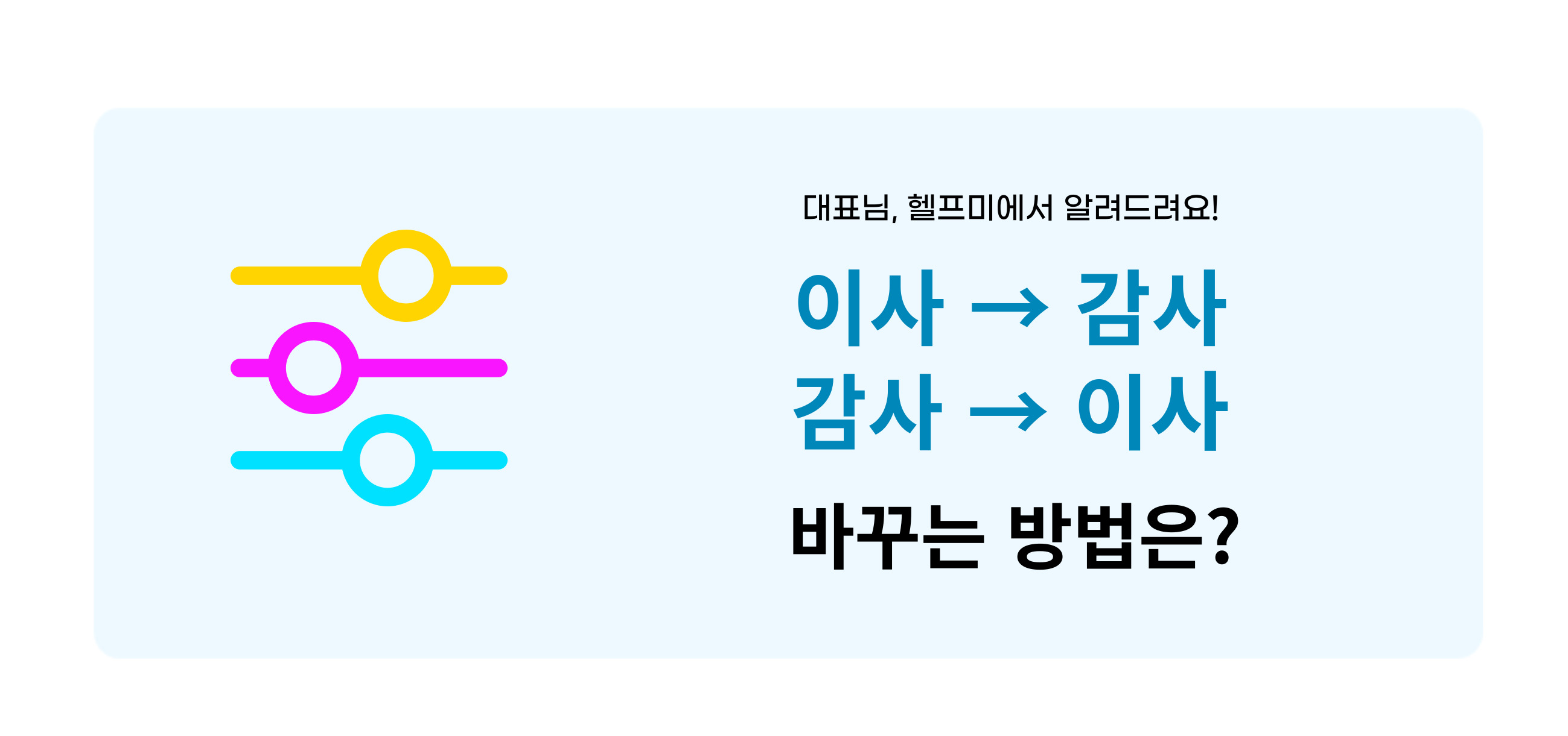 단, 법인 감사는 이사와 겸직할 수 없으므로 이사였던 사람이 감사직으로 변경하면 기존 이사직은 자동 사임됩니다.
