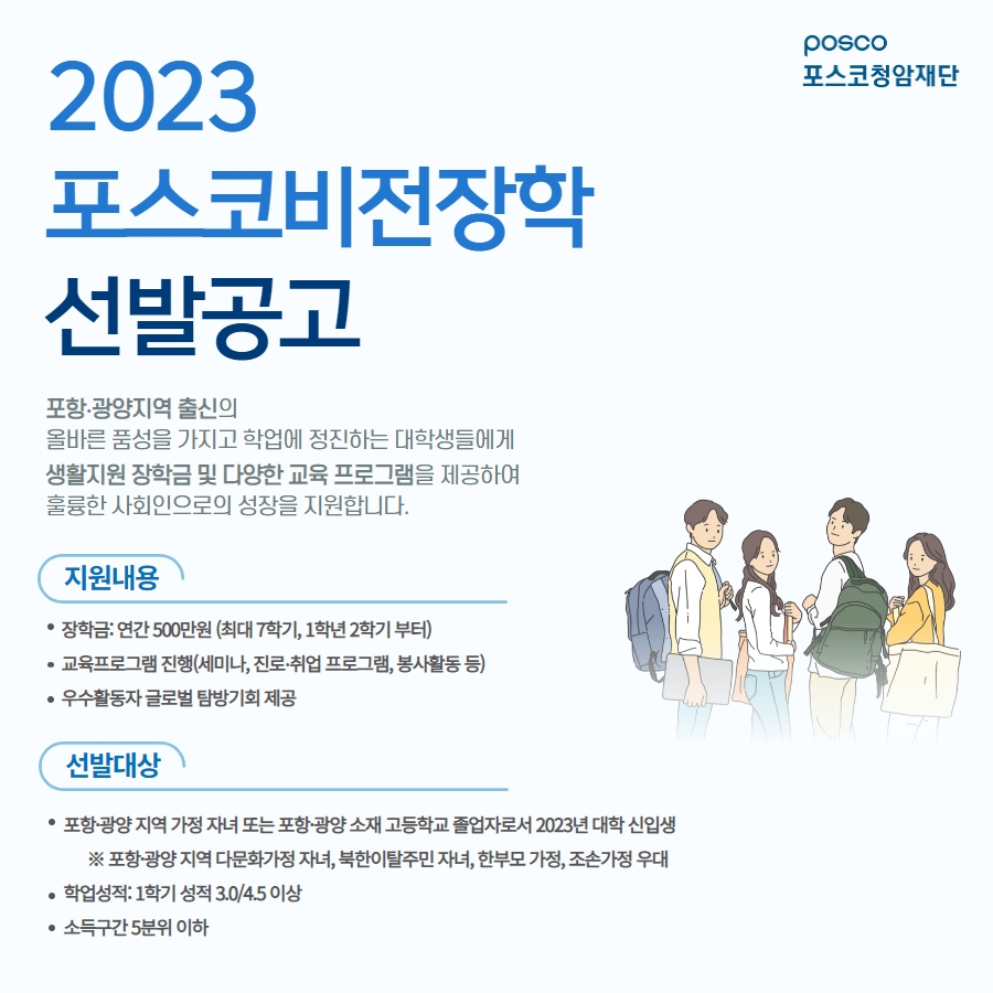 포항∙광양지역 출신의 올바른 품성을 가지고 학업에 정진하는 대학생들에게